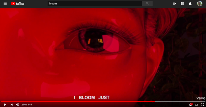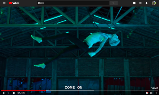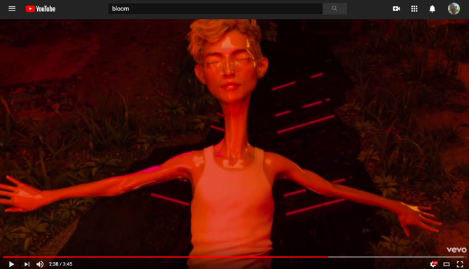 “Bloom” is what I call a “bottom power ballad.” The punny significance of this term is threefold. First, “bottom” is gay slang for the receptive partner in male-male sexual encounters (“top” describes the penetrative partner). Men on the “bottom” are often stereotyped as passive, effeminate, and powerless, maybe even bent on self-shattering. Second, I’m making a rather obvious pun on the 1980s power ballad, a genre that offers musicians (most often men who otherwise rock) an opportunity to explore their sensitive, and some might say feminine, sides. Musically, however, “Bloom” is not a power ballad but a mid-tempo electronic dance tune. In making a connection between the power ballad and “Bloom,” I draw less from the musical semiotics of the genre than from a discourse that surrounds the power ballad, a discourse that Spin music journalist Charles Aaron characterizes in terms of male vulnerability, humiliation, and shame. Finally, I suspect that Bloom/ “Bloom” can complicate or queer the notion of “bottom power,” a Nigerian turn of phrase used to describe women’s reliance on sex/sexuality to access male power and privilege. I first learned the phrase from Chimamanda Ngozi Adichie’s TedTalk, WE SHOULD ALL BE FEMINISTS, and I borrow then playfully misuse it here.