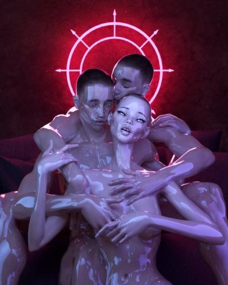 Sivan’s sexy new androgyne image seems to have been inspired by the work of Melbourne-based 3D artist Jason Ebeyer, who created the Bloom lyric video. Taking inspiration from online subcultures, erotica, and technology, Ebeyer’s digital art explores the worlds of light and color as well as darkness and shadow in trippy, shimmering tableaux that blur the boundary between reality and the hallucinogenic world of dreams.