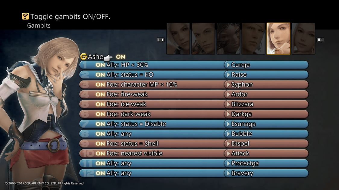 | Figure 1: Final Fantasy XII: The Zodiac Age Gambit System |