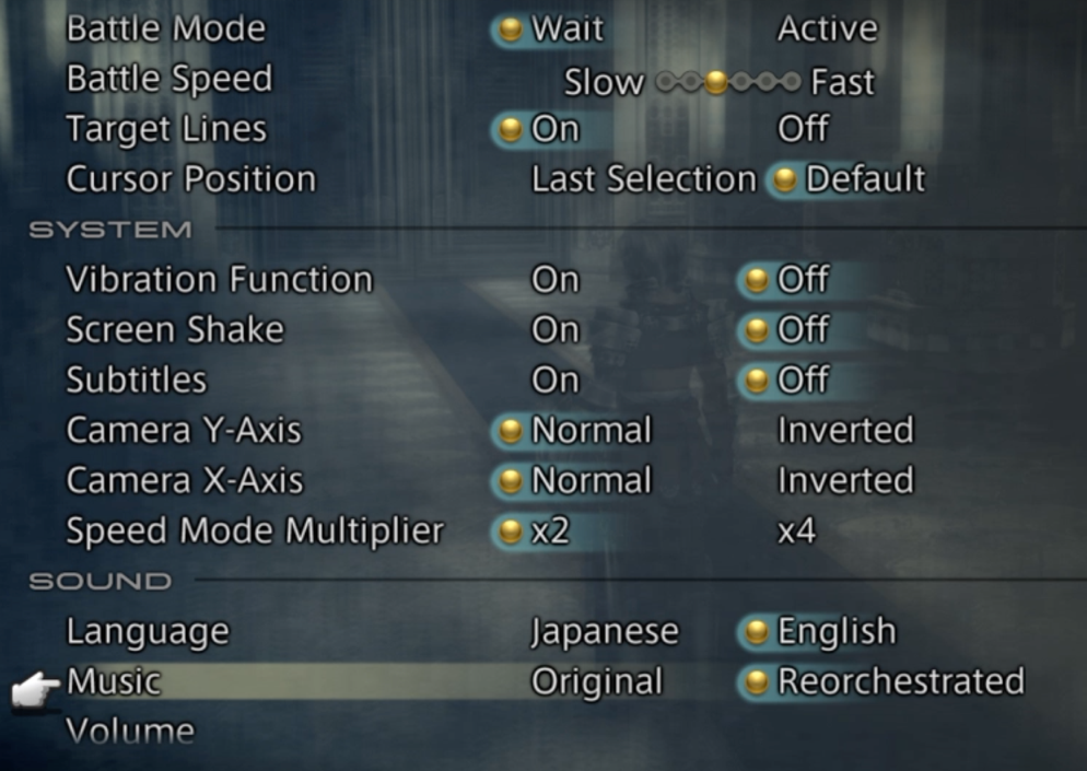 | Figure 1. Configuration screen from Square Enix’s Final Fantasy XII: The Zodiac Age. |