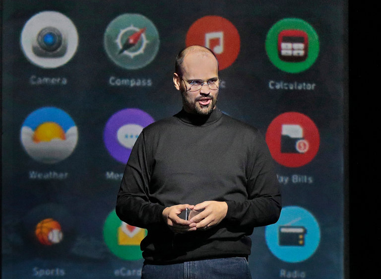 Is there drama in bytes? Or poetry in the smart phone? Only a Luddite would reject out of hand such tantalizing prospects for Santa Fe Opera’s 2017 premiere, a co-production with San Francisco Opera and Seattle Opera about the computer entrepreneur Steve Jobs, co-founder and CEO of Apple Inc. On a beautiful summer evening at one of the world’s great outdoor stages, this new work by librettist Mark Campbell and composer Mason Bates held out the possibility of a useful update to opera’s venerable operating system, one inspired by our trusty devices. Notwithstanding the suggestive title, (R)Evolution steers mostly clear of Steve Jobs’ creative evolution and his transformative role in the digital revolution. Instead, it’s a series of short scenes that focus on his relational and spiritual issues. Part of clutch of contemporary operas about important events and people (from Satyagraha through Dr. Atomic), (R)Evolution is an opera about a brilliant, if testy, computer nerd. Unlike the elegant iPhone, however, Campbell and Bates’ opera makes little effort to infuse technology with artistry; instead, it’s an operatic bio of a socially awkward guy who becomes an arrogant corporate chief.
