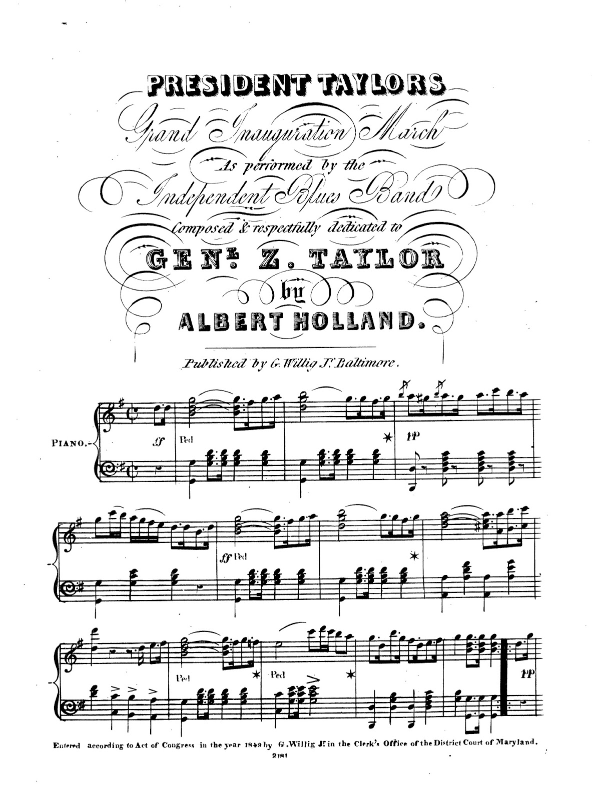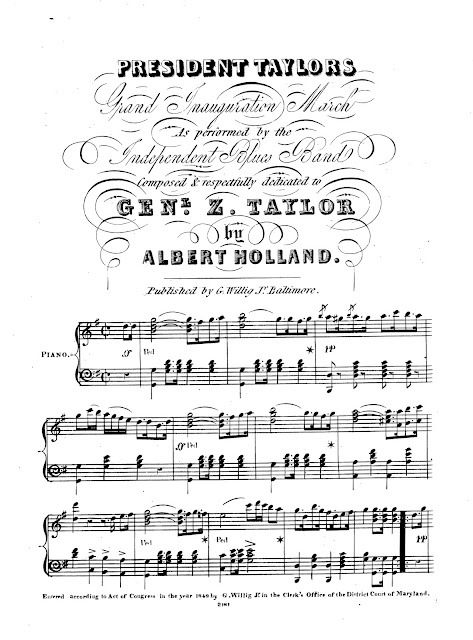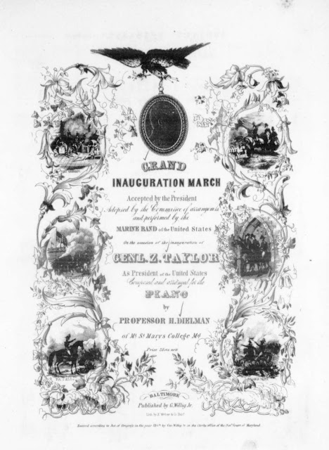 Faced with the question of how to provide audio for the episode, I turned to the Sheet Music Consortium, which preserves piano-reductions of his more popular works. I recorded a few of these to sound “old-timey,” including a version of “President Taylor’s Grand Inauguration March.” However, I realized after the episode had been released that the version cataloged by the Library of Congress Performing Arts Encyclopedia was NOT actually by Dielman: although the cover page bears his name, the subsequent score is by Albert Holland. I have alerted the authorities on this error. Now I just need to go back and edit in the correct “Grand Inauguration March” into the podcast—which is possible when dealing with digital media!