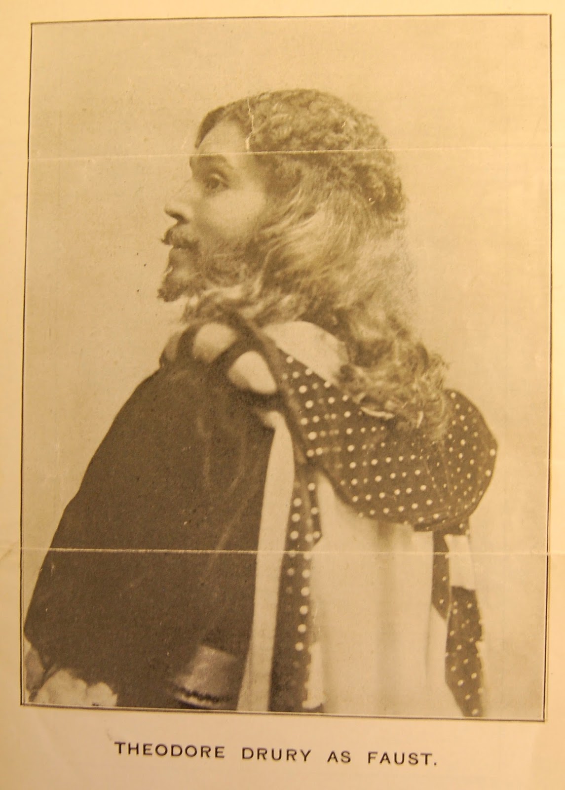 | picture of Drury as Faust taken from a program for the May 5, 1902 performance of Faust by the Theodore Drury Grand Opera Company, Harvard Theatre Collection |